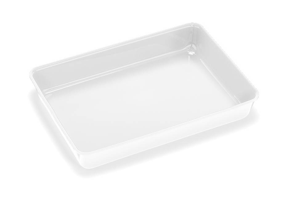 Auslageschale Randhöhe 7,5 cm, Abm.: ca. 42x28x7,5 cm, mit Rand weiß
