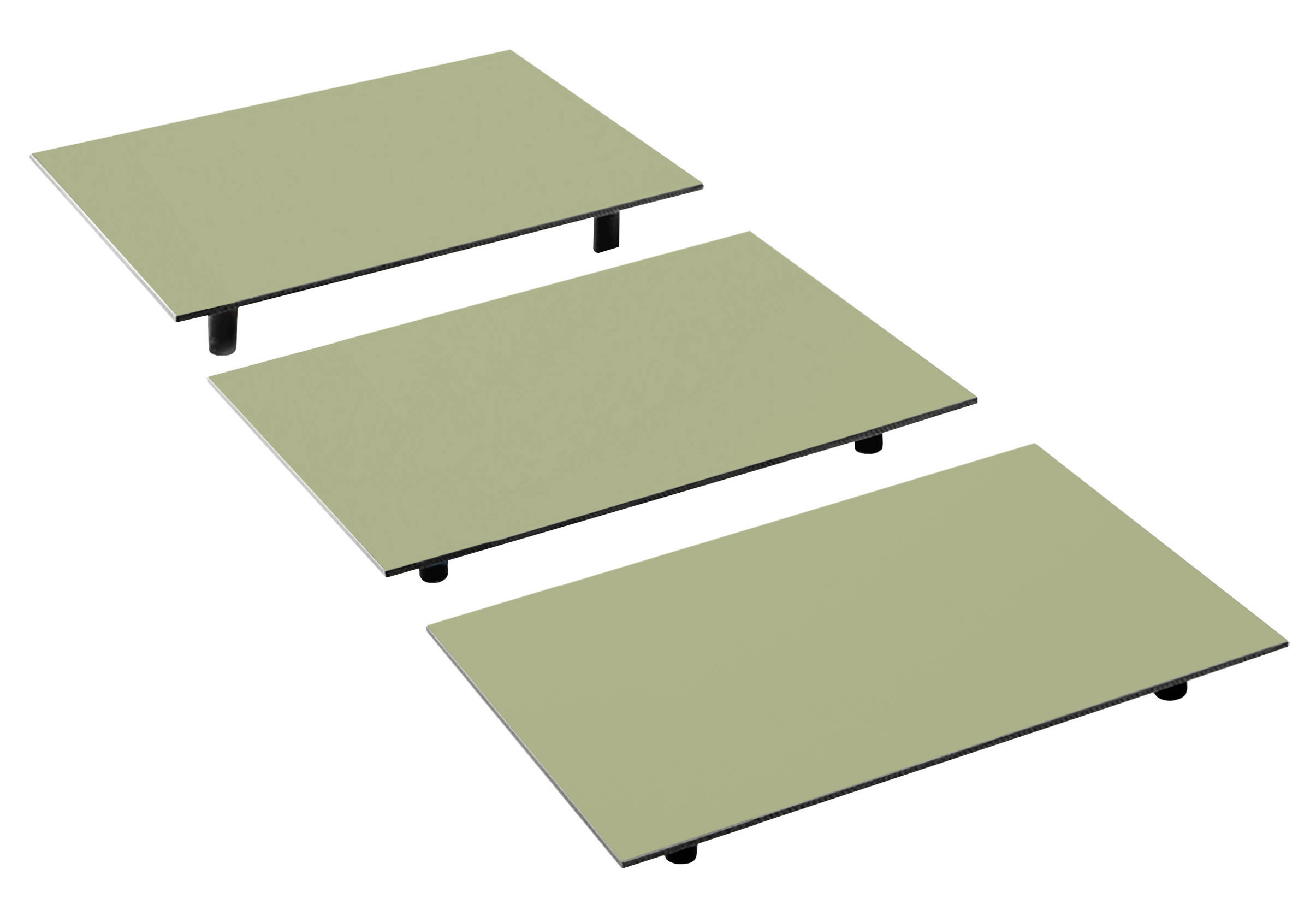 Thekenstufen-Set Pagua 820, 3-stufig, bestehend aus: 3 Thekenplatten 40 x 26,5 cm, mit je 4 Füßchen S1, Höhe 20, 40, 60 mm
